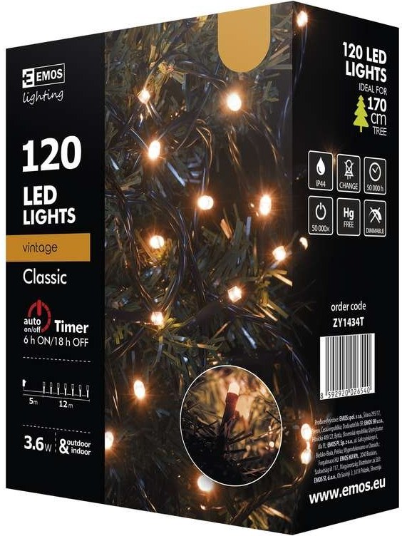 Emos ZY1434T, vianočná reťaz s časovačom 12 m 120 LED jantárová