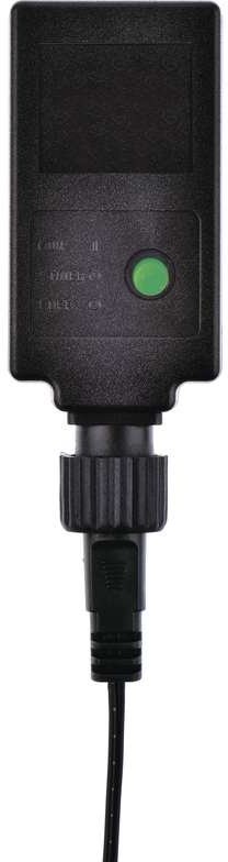 Táto svetelná reťaz má na tele transformátora (adaptéra) zabudovaný časovač. Funkcia časovača znamená, že po prvom zopnutí bude reťaz svietiť stále. Po druhom zopnutí (rozsvieti sa zelené svetlo) sa nastaví časovač na dobu 6 hodín. Potom sa automaticky vypne a bude po dobu 18 hodín vypnutý. V týchto intervaloch (6 hodín zapnuté / 18 hodín vypnuté) bude automaticky pracovať dovtedy, kým ho tretím zopnutím nevypnete.