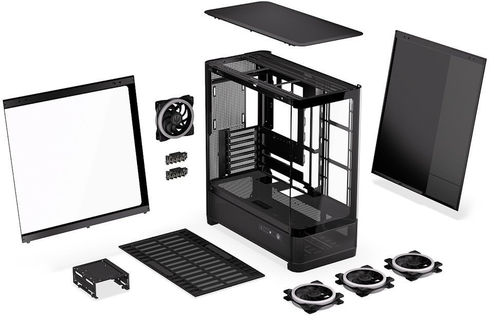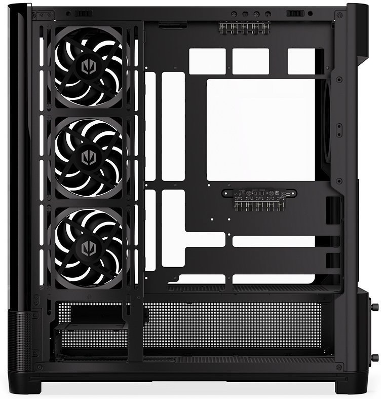 Pod elegantným zovňajškom sa skrýva obrovský vnútorný priestor navrhnutý pre tie najnáročnejšie zostavy. Skrinka bez problémov pojme základné dosky formátu SSI-CEB (E-ATX do šírky 280 mm) a ponúka plnú podporu pre moderné dosky so zadnými konektormi (back-connect), čo zaručuje dokonale čistý manažment káblov. S dĺžkou pre grafickú kartu až 450 mm a výškou pre procesorový chladič až 179 mm máte istotu, že do nej osadíte aj tie najväčšie komponenty súčasnosti bez akýchkoľvek kompromisov.