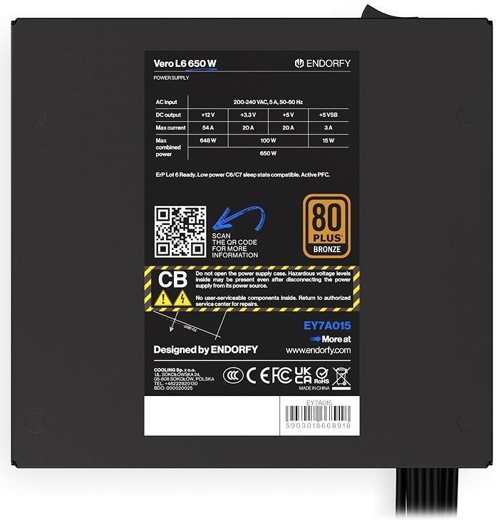 Endorfy si stojí za kvalitou svojich produktov, preto Vero L6 Bronze 650W prichádza s 5-ročnou zárukou. Okrem toho má zdroj životnosť až 80 000 hodín (MTBF), čo ho robí ideálnym riešením pre používateľov, ktorí hľadajú dlhodobú investíciu do stabilného napájania svojho systému. Jeho tichý chod je potvrdený certifikáciou Cybenetics Noise Rating Standard++, čo ocenia najmä tí, ktorí preferujú tichý PC.