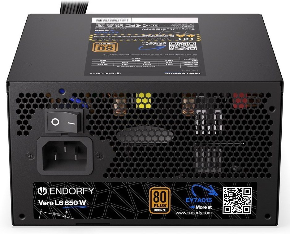 Endorfy Vero L6 Bronze 650W je výkonný ATX 3.1 zdroj navrhnutý tak, aby poskytoval stabilný a spoľahlivý výkon aj pri vysokých nárokoch. Vďaka certifikáciám Cybenetics Silver a 80 PLUS Bronze dosahuje vysokú energetickú účinnosť, čo znamená nižšiu spotrebu energie a menej tepla. Tento model je ideálny pre moderné herné a pracovné zostavy, ktoré vyžadujú dlhodobú stabilitu.