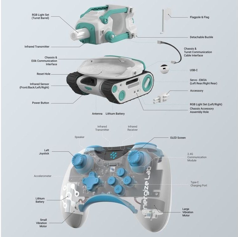 Energize Lab Panxer predstavuje prelomový koncept v oblasti interaktívnych robotických hračiek, ktorý výrazne prekračuje hranice bežných diaľkovo ovládaných vozidiel. Tento sofistikovaný bojový tank bol exkluzívne navrhnutý spoločnosťou Maticauo pre robota Eilik, pričom vytvára synergickú kombináciu fyzickej hračky a videoherného zážitku, ktorá mení spôsob, akým vnímame interaktívnu zábavu v domácom prostredí. Samotné vozidlo Panxer s rozmermi 19,1×13×17,4 cm a hmotnosťou 559 g predstavuje precízne skonštruovaný systém, ktorý využíva vysokopevnostnú polykarbonátovú konštrukciu zaisťujúcu odolnosť pri zachovaní optimálnej hmotnosti pre dynamické manévre. Integrácia dvoch servomotorov EM3A umožňuje presné riadenie pohybu s výnimočnou odozvou, ktorá je kľúčová pre realizáciu komplexných herných scenárov. Batéria s kapacitou 1200 mAh pri napätí 7,4 V poskytuje až dve hodiny nepretržitej prevádzky, pričom doba nabíjania je iba 90 minút prostredníctvom USB-C portu s príkonom 5V 2A, čo reflektuje moderné štandardy rýchleho nabíjania. Revolučný aspekt Panxera spočíva v jeho schopnosti transformovať robota Eilik na plnohodnotného tankového pilota s bohatou škálou animácií, zvukových efektov a interaktívnych reakcií.Eilik v akcii