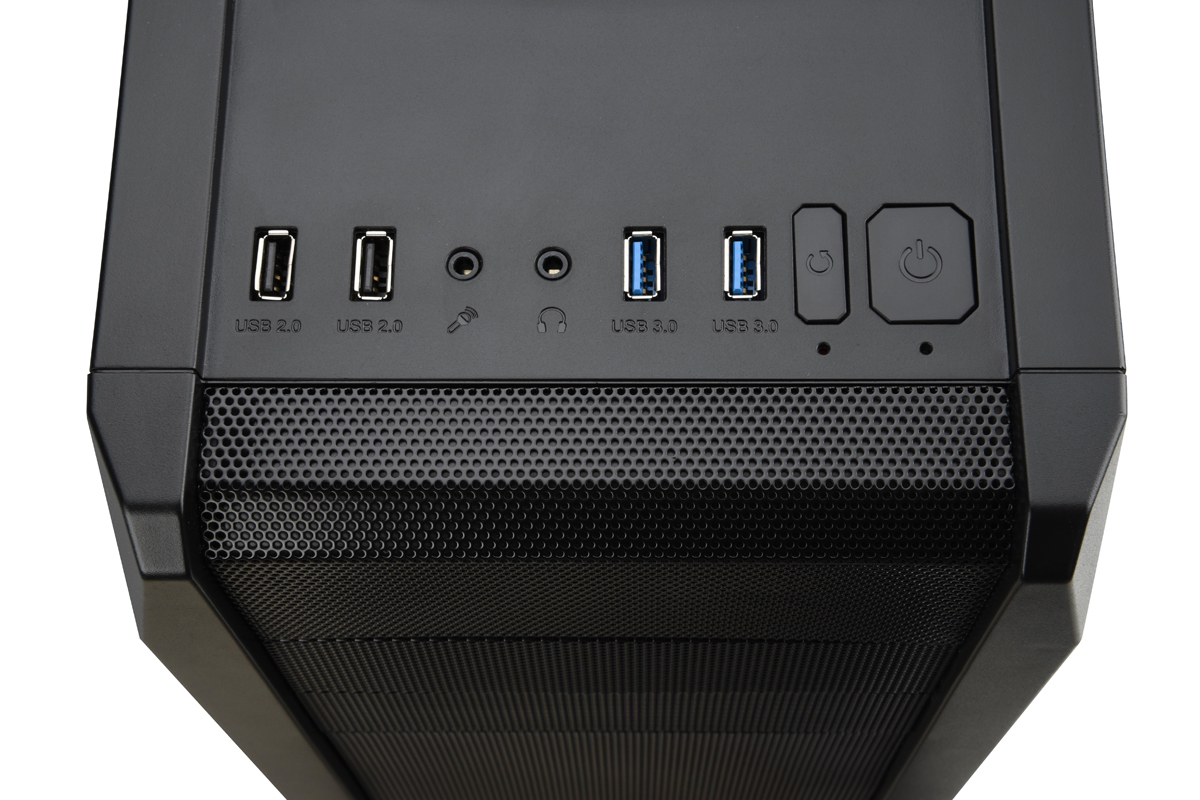 Meshed panels ensure a good air flow throughout the case and provide optimised system cooling.