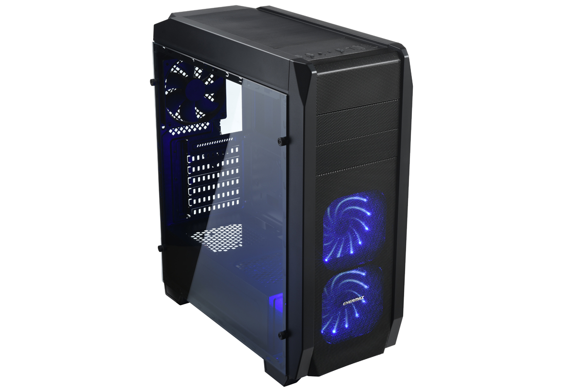 Three quality Enermax fans included: Two 120mm Enerflo or Apollish LED fans (ECA3520B-03-BL and ECA3520B-03-R) in the front and one 120mm Enerflo fan at the back are pre-installed.