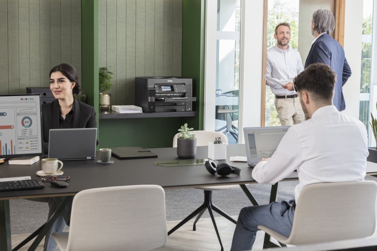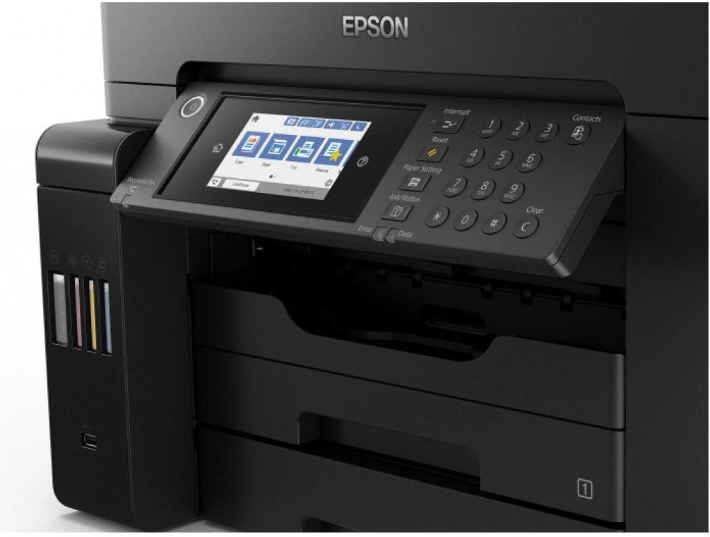 Ovládanie zariadenia je intuitívne vďaka 10,9 cm dotykovej LCD obrazovke doplnenej hardvérovými tlačidlami. Tlačiareň ponúka široké možnosti pripojenia – Wi-Fi, Wi-Fi Direct, Ethernet a USB, čo umožňuje pohodlnú tlač z počítačov aj mobilných zariadení. S aplikáciami Epson iPrint a Smart Panel môžete tlačiť priamo zo smartfónu alebo tabletu, čo zvyšuje flexibilitu práce.