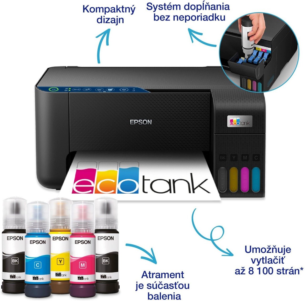 EcoTank poskytuje bezproblémovú domácu tlač – zásobníky atramentu s veľkou kapacitou umožňujú dopĺňanie bez neporiadku a fľaštičky so zaisťujúcim mechanizmom sú navrhnuté tak, aby bolo možné vložiť len správnu farbu. Vďaka ukazovateľu hladiny atramentu na prednej strane ľahko zistíte, keď ho bude treba doplniť.Nabité funkciami