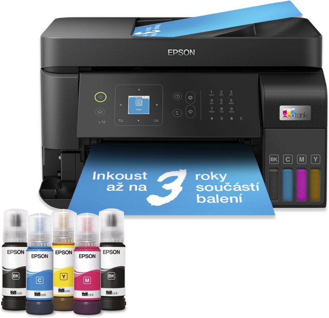 Epson EcoTank L5590 je multifunkčná atramentová tlačiareň, ktorá je ideálna pre domáce kancelárie a malé podniky hľadajúce ekonomickú a efektívnu tlačovú riešenie. Tento model ponúka vysokú úsporu nákladov na tlač s možnosťou ušetriť až 90 % oproti tradičným atramentovým kazetám. Vďaka inovatívnemu systému dopĺňania atramentu pomocou fľaštičiek so zaisťujúcim mechanizmom je dopĺňanie atramentu jednoduché a čisté, bez rizika rozliatia alebo zamieňania farieb.