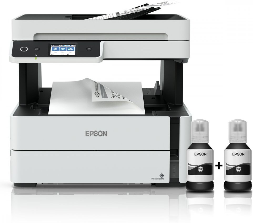 Epson EcoTank M3170 je navrhnutá ako efektívne riešenie pre používateľov, ktorí potrebujú spoľahlivú tlač, skenovanie, kopírovanie a fax bez vysokých prevádzkových nákladov. Vďaka veľkej doplniteľnej atramentovej nádržke už nie je potrebné meniť klasické tonerové kazety. Súčasťou balenia je čierny atrament s kapacitou až 11 000 vytlačených strán, čo výrazne znižuje frekvenciu dopĺňania a šetrí čas aj peniaze.Vysoká kvalita tlače a rýchla prevádzka