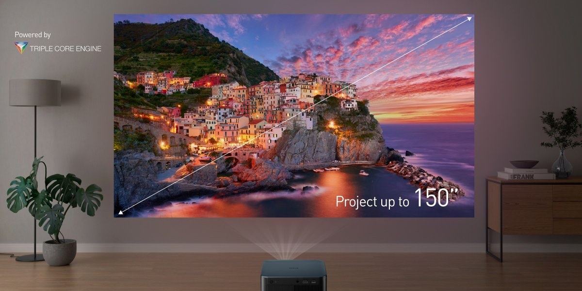 S integrovaným systémom Google TV máte okamžitý prístup k viac ako 400 000 filmom a seriálom z populárnych služieb ako Netflix, Disney+, YouTube či Prime Video. Ovládanie uľahčuje Google Assistant, vďaka ktorému stačí vysloviť hlasový príkaz na vyhľadanie obsahu. Nastavenie obrazu je vďaka technológii „Inteligentné okamžité nastavenie“ hračkou – projektor po zapnutí automaticky zaostrí, vyrovná lichobežníkové skreslenie, vyhne sa prekážkam na stene a prispôsobí veľkosť obrazu (až do 150 palcov) tak, aby bol dokonalý v priebehu niekoľkých sekúnd.