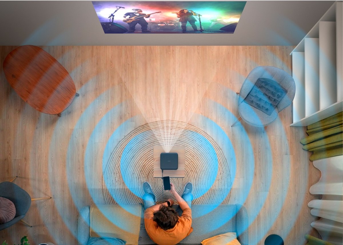Zabudnite na externé reproduktory. Tento model je vybavený prémiovým zvukovým systémom „Sound by Bose“, ktorý bol navrhnutý tak, aby poskytoval plný a čistý zvuk priamo z kompaktného tela zariadenia. V kombinácii s technológiou Dolby Audio a dvoma pasívnymi žiaričmi vytvára projektor bohatú zvukovú kulisu, ktorá vás vtiahne do deja. Navyše ho vďaka rozhraniu Bluetooth môžete používať aj ako samostatný vysokokvalitný reproduktor na streamovanie vašej obľúbenej hudby zo smartfónu.