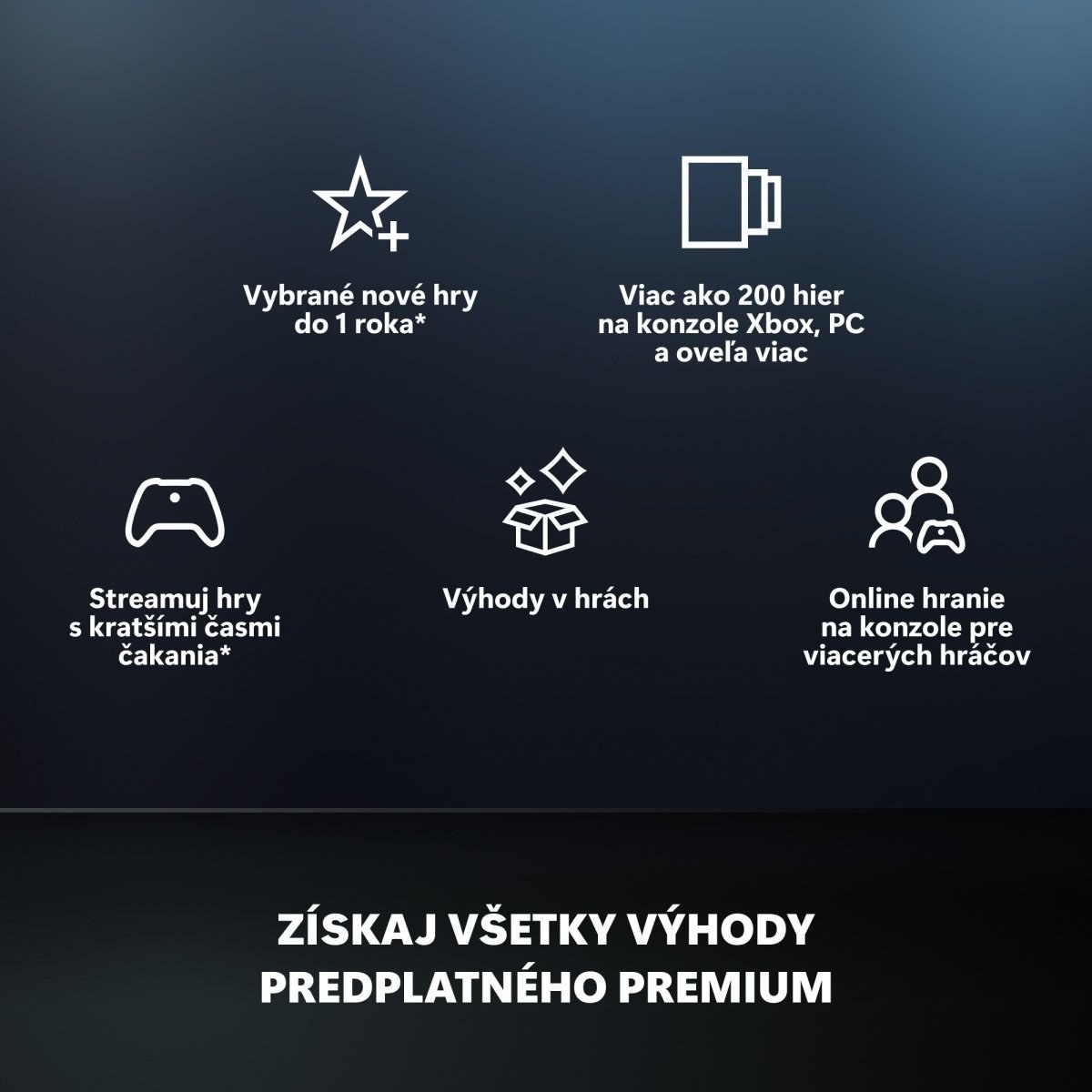 Predplatné Premium zahŕňa online konzolový multiplayer, exkluzívne bonusy v populárnych hrách a exkluzívne odmeny. Navyše získate atraktívne zľavy na nákup hier a možnosť získavať dvojnásobné Rewards body pri hraní či nakupovaní doplnkov. Počas troch mesiacov tak naplno využijete všetky výhody, ktoré toto predplatné ponúka nad rámec štandardného hrania.