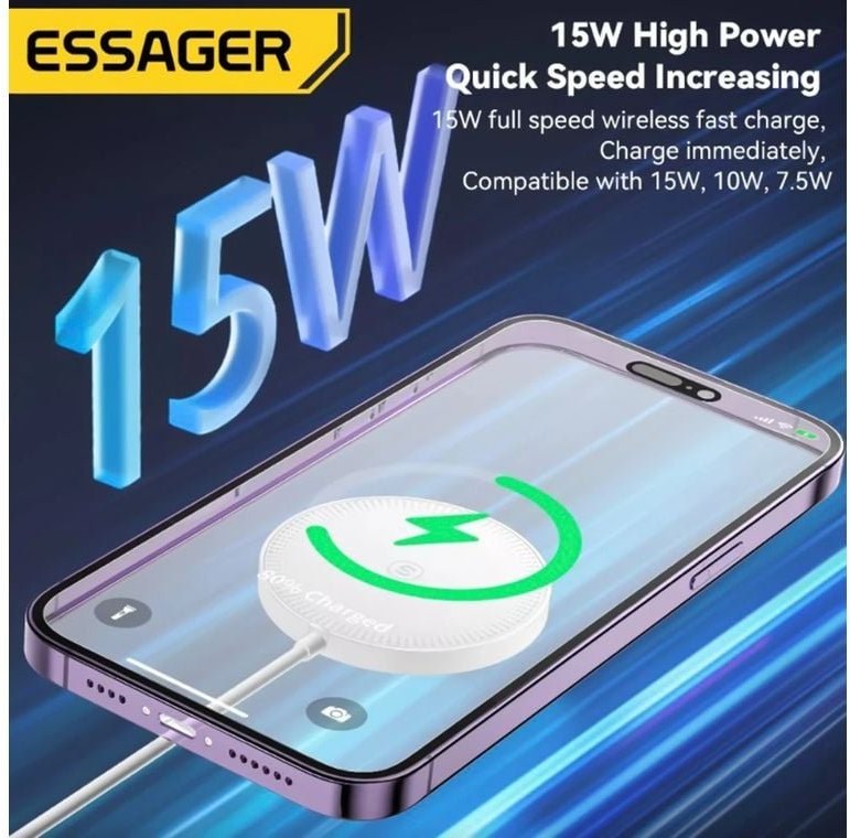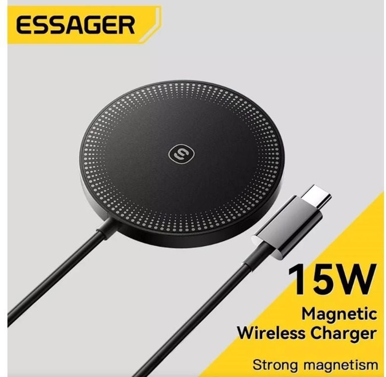 Essager magnetická bezdrôtová nabíjačka, 15W, čierna