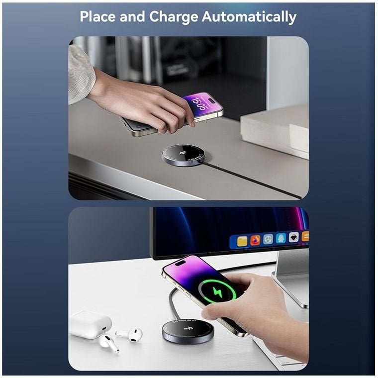 Magnetická bezdrôtová nabíjačka Essager ES-WC11 je pokročilé riešenie na efektívne nabíjanie moderných mobilných zariadení, ktoré využíva najnovší štandard Qi2 s maximálnym výkonom 15 W na rýchle a bezpečné nabíjanie kompatibilných zariadení vrátane zariadení iPhone radu 12 a vyššie. Konštrukcia kombinuje prémiovú hliníkovú zliatinu s vysoko odolným polykarbonátom, čo zaručuje nielen elegantný biely vzhľad, ale predovšetkým vynikajúci odvod tepla počas nabíjania a dlhodobú odolnosť pri každodennom používaní. Integrovaný magnetický systém zaručuje presné zarovnanie nabíjacej cievky s prijímačom v telefóne, čím sa maximalizuje účinnosť prenosu energie a eliminuje neefektívne nabíjanie spôsobené nesprávnym umiestnením zariadenia. Kompaktné rozmery 15 × 9 × 2 cm pri hmotnosti len 94 g umožňujú jednoduchú prepravu vo vrecku alebo taške, zatiaľ čo certifikáty CE, RoHS a FCC potvrdzujú súlad s najprísnejšími bezpečnostnými a environmentálnymi normami pre európsky aj americký trh.Nabíjačka je vybavená inteligentným systémom automatickej detekcie pripojeného zariadenia s dynamickou reguláciou výstupného výkonu v rozsahu 5, 7,5, 10 alebo 15 W podľa prúdových požiadaviek nabíjaného zariadenia, zatiaľ čo viacúrovňový systém ochrany vrátane ochrany proti skratu, prepätiu, prehriatiu, preťaženiu a nízkemu napätiu zaisťuje absolútnu bezpečnosť počas celého nabíjacieho cyklu. Vstupné parametre podporujú 5 V/2 A, 9 V/2 A alebo 12 V/2 A prostredníctvom moderného rozhrania USB-C, čím je zabezpečená kompatibilita s väčšinou súčasných napájacích adaptérov a powerbánk. Univerzálna kompatibilita pokrýva nielen smartfóny s podporou bezdrôtového nabíjania, ale aj bezdrôtové slúchadlá ako AirPods a inteligentné hodinky ako Apple Watch alebo Galaxy Watch, vďaka čomu nabíjačka predstavuje centrálne riešenie nabíjania všetkých mobilných zariadení v modernej domácnosti alebo kancelárii.