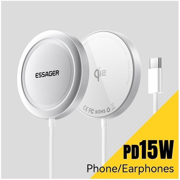 Essager magnetická bezdrôtová nabíjačka Qi2, 15W, biela
