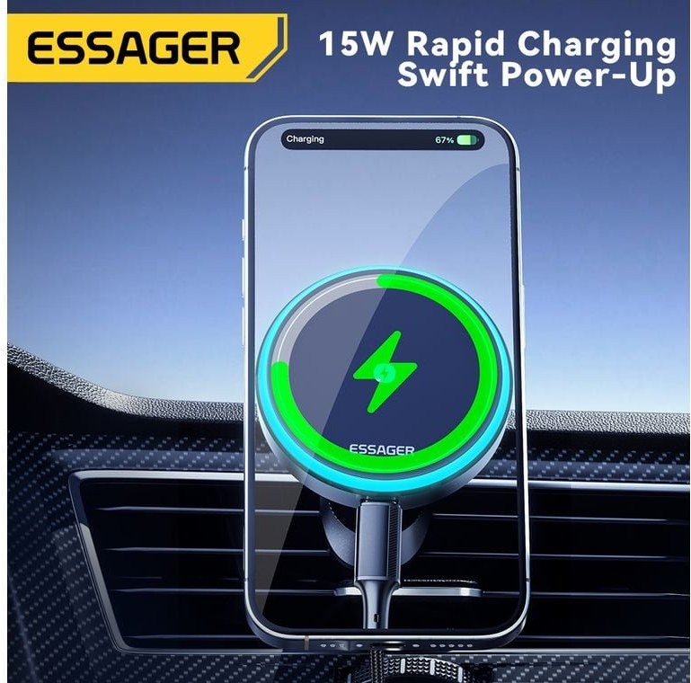 Essager magnetický držiak do auta s bezdrôtovým nabíjaním, 15W