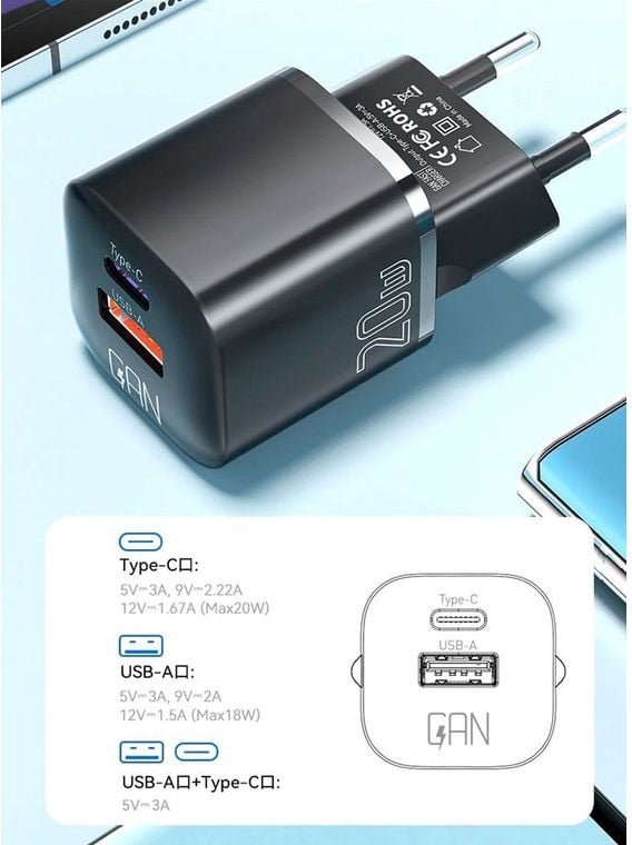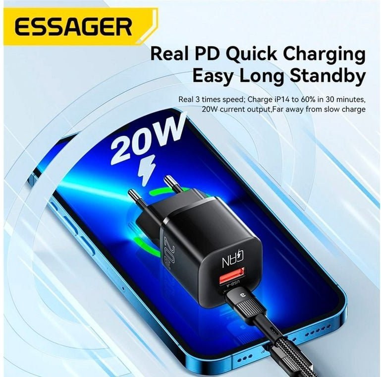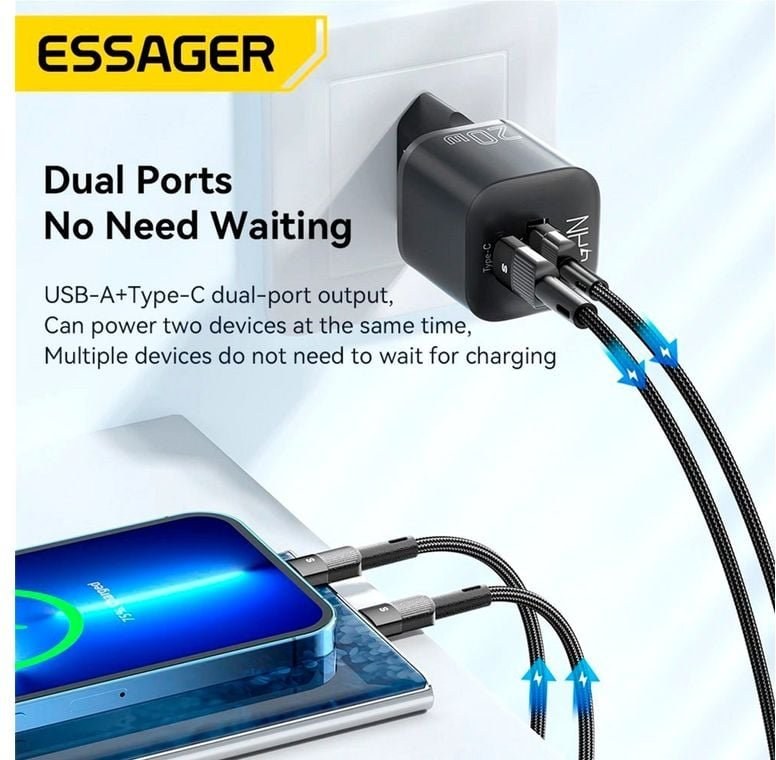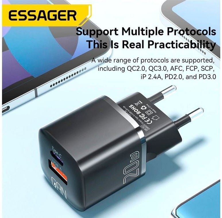 Essager nabíjačka, 20W, GaN, USB-C + USB-A