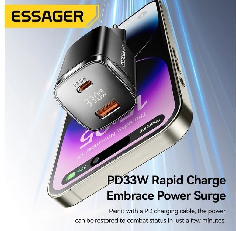 Essager nabíjačka, 33W, GaN, USB-C + USB-A