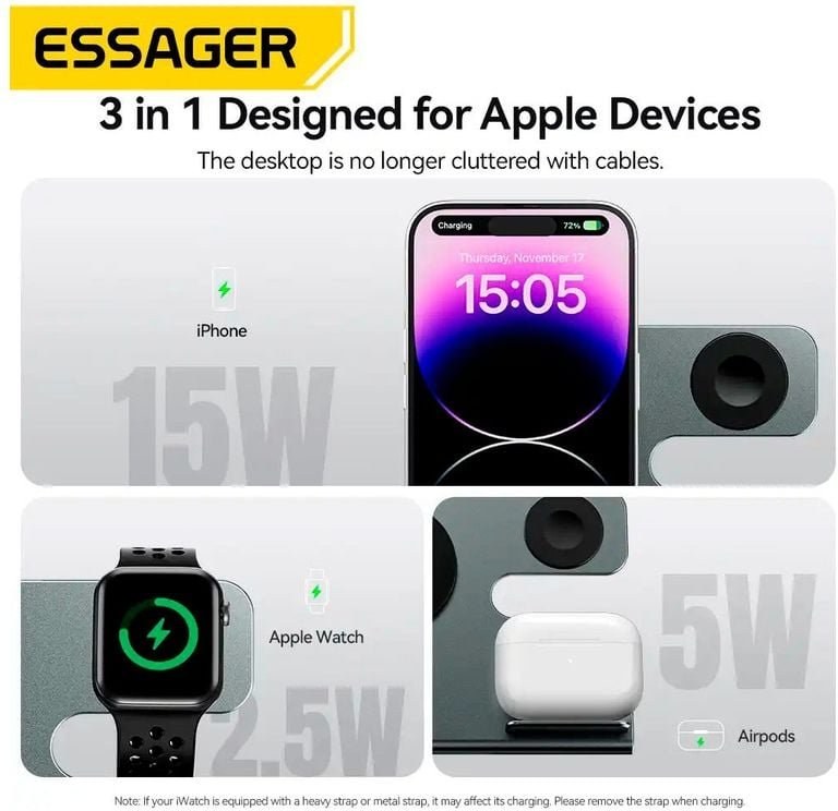 Essager stolná magnetická nabíjačka 3v1,15W
