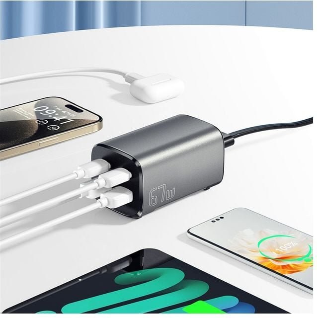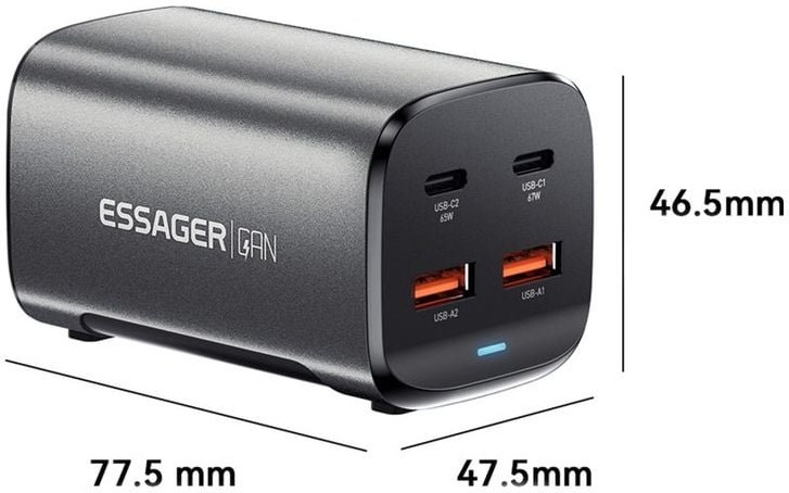 Essager stolová nabíjačka, 67W, GaN, 2xUSB-C + 2xUSB-A