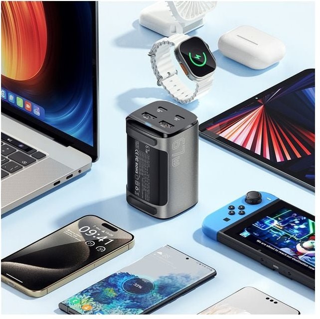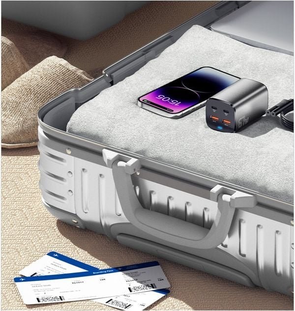 Stolová nabíjačka Essager ECT2AC-JYB0G-Z je špičkové riešenie napájacieho adaptéra využívajúce pokročilú technológiu GaN založenú na polovodičoch z nitridu gália, ktorá zásadne mení parametre nabíjania elektronických zariadení tým, že v porovnaní s tradičnými kremíkovými komponentmi výrazne zvyšuje účinnosť premeny energie. Táto polovodičová technológia tretej generácie sa vyznačuje schopnosťou pracovať pri spínacích frekvenciách presahujúcich 1 MHz, čo je desaťnásobok hodnôt dosahovaných kremíkovými tranzistormi, a zároveň vykazuje tepelnú vodivosť 1,5 W/cm-K, čo je trikrát viac ako 0,5 W/cm-K u kremíka, čo umožňuje efektívnejší odvod tepla bez potreby masívnych chladičov. Tento tmavosivý adaptér s maximálnym výkonom 67 W ponúka štyri výstupné porty vrátane dvoch konektorov USB-C a dvoch konektorov USB-A, čo umožňuje nabíjať až štyri zariadenia súčasne s inteligentnou distribúciou energie na základe aktuálnych potrieb prostredníctvom zabudovaného mikroprocesora, ktorý vyhodnocuje optimálne rozloženie energie tisíckrát za sekundu. Rozmery nabíjačky sú 97 × 47 × 46 mm s celkovou hmotnosťou približne 350 gramov vrátane napájacieho kábla, pričom samotné telo nabíjačky váži podľa niektorých správ len 41 gramov, čo naznačuje použitie dutej konštrukcie a optimalizovaného vnútorného usporiadania na minimalizáciu hmotnosti pri zachovaní štrukturálnej integrity.Táto optimalizácia hmotnosti bola dosiahnutá použitím pokročilých výrobných techník vrátane vstrekovania plastov s mikropenovou štruktúrou, ktorá znižuje hustotu materiálu o 15 až 20 percent pri zachovaní 95 percent pôvodnej pevnosti. Konštrukcia je navrhnutá tak, aby bola stabilná na stole alebo nočnom stolíku s nízkym ťažiskom umiestneným v dolnej tretine výšky zariadenia a širšou základňou s pomerom šírky k výške 1:1, čo zabraňuje prevráteniu aj pri zaťažení štyrmi pripojenými káblami, ktoré ťahajú nabíjačku rôznymi smermi. Telo nabíjačky je vyrobené z kombinácie kvalitného termoplastu ABS a polykarbonátu PC v pomere približne 70:30, ktoré spolu zabezpečujú výnimočnú mechanickú pevnosť s odolnosťou proti nárazu presahujúcou 400 J/m2, tepelnú stabilitu do 125 °C pri trvalom zaťažení a 145 °C pri krátkodobých nárazoch a nehorľavosť podľa medzinárodných bezpečnostných noriem UL94 V-0, čo znamená, že materiál sa do 10 sekúnd po odstránení plameňa sám uhasí bez odkvapkávania horiacich častíc, ktoré by mohli zapáliť okolité materiály.