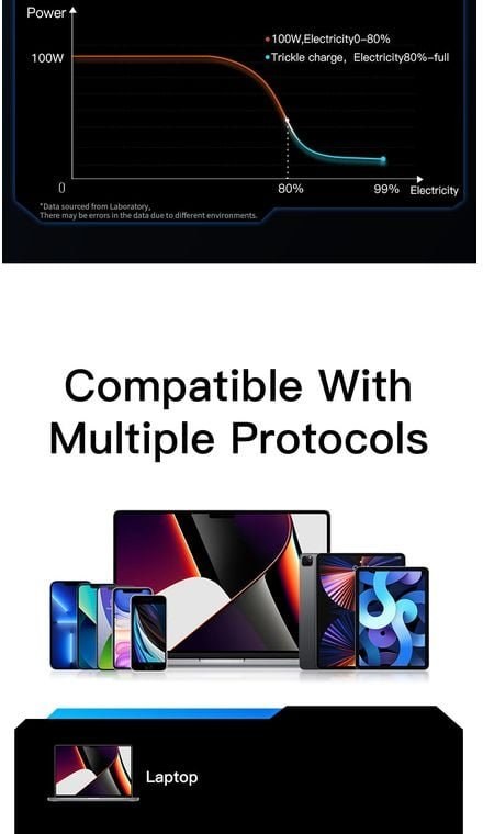 Podporované výkony: 18 W, 30 W, 45 W, 60 W, 65 W, 96 W, 100 W (automatická detekcia)