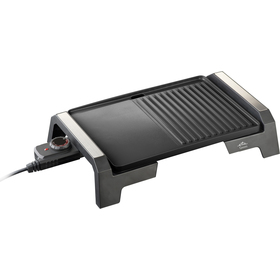 elektrický gril GRADO, grilovacia plocha s keramickým povrchom, rozmer grilovacej plochy: 254 x 356 mm, jednoduché ovládanie pomocou otočného regulátora, odnímateľný nástrčkový termostat s plynulou reguláciou teploty (max. 230 °C), vyberateľná a jednoducho čistiteľná odkvaavacia nádoba, otvor pre odvod tukov, svetelná signalizácia prevádzky a dosiahnutia teploty, grilovacia plocha s antiadhéznou povrchovou úpravou, tepelne odizolované držadlá pre bezpečnú obsluhu a jednoduchú manipuláciu, protiskluzové nožičky zaišťujúce stabilitu, jednoduché a rýchle zostavenie, jednoducho umývateľný povrch, dĺžka prívodného kábla 0,75 m, príkon 2000 W