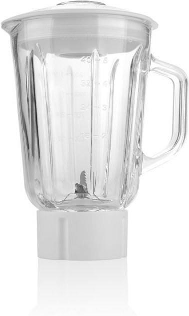 V pracovnej nádobe, ktorá je vyrobená z veľmi kvalitného skla, pripravíte až 1,5l tekutín či hmôt. S kvalitnými nerezovými nožmi umixujete obsah v nádobe do jemnej konzistencie. Otáčky si môžete behom mixovania plynule regulovať a pre dosiahnutie ich maxima použiť tlačidlo TURBO. Suroviny je možné pridávať tiež za chodu mixéra a to vďaka praktickému otvoru vo veku nádoby. Nájdete tam tiež odmerku pre jednoduché a presné dávkovanie.