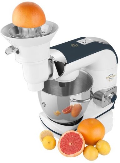Kuchynský robot ETA Gratus Vital II, ktorý je ešte výkonnejší a šikovnejší s plynulou reguláciou otáčok pre voliteľnú rýchlosť a intenzitu spracovania surovín. Robot Gratus Vital II je jednoducho neprekonateľný pri spracovaní surovín a príprave krémov a rôznych druhov cesta vo veľkej 5,5 litrovej nerezovej pracovnej mise. Pre každý druh krému či cesta je k dispozícií najvhodnejší nástavec – metlu na šľahanie, metlu na miesenie, hnetací hák, flexi metlu alebo gluten free hák na bezlepkové cestá.