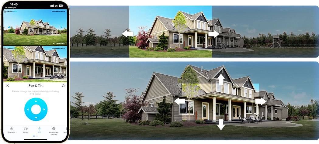 Pomocou aplikácie EZVIZ môžete kameru ovládať na diaľku – meniť uhly pohľadu, aktivovať patrolu alebo sledovať detailné zábery. HB90 podporuje Wi-Fi 6 (2.4 GHz), je kompatibilná s Google Assistant a Amazon Alexa, a umožňuje ukladanie záznamov na microSD kartu (do 512 GB) alebo do EZVIZ CloudPlay. Vďaka odolnému dizajnu je vhodná do každého počasia.