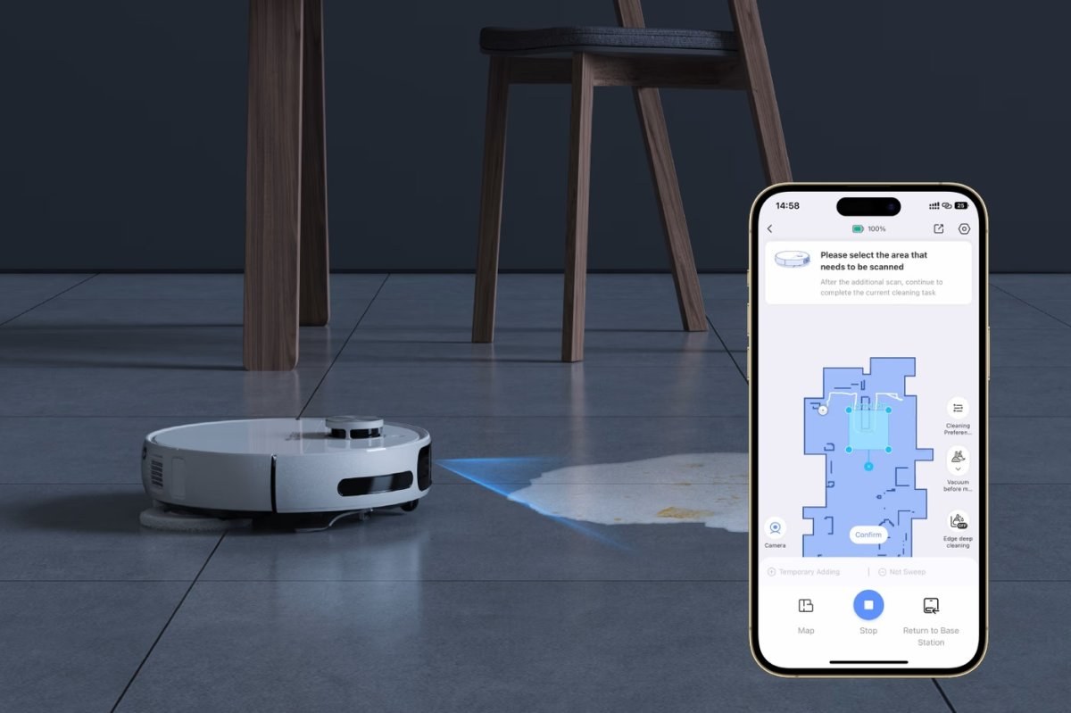 RS20 Max je navrhnutý tak, aby zvládol celý proces čistenia úplne samostatne. Vďaka inteligentnej automatizácii si sám určuje poradie miestností, prispôsobuje intenzitu čistenia podľa typu podlahy a dokonca rozpoznáva rozliate tekutiny, ktoré následne trikrát dôkladne premopuje. Jeho samočistiaca stanica zabezpečuje vyprázdňovanie, čistenie a dopĺňanie vody, čím sa minimalizuje potreba údržby.