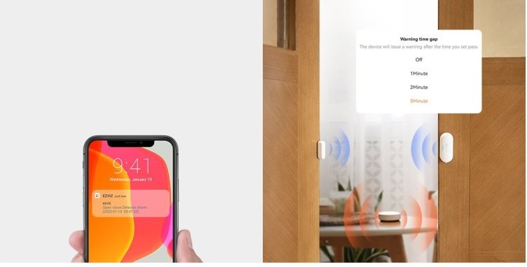 senzor, detekcia otvorenia / zatvorenia, inštalácia odlepením a nalepením, okamžité upozornenia prostredníctvom aplikácie EZVIZ, Alarm proti manipuláciiZobraziť viac