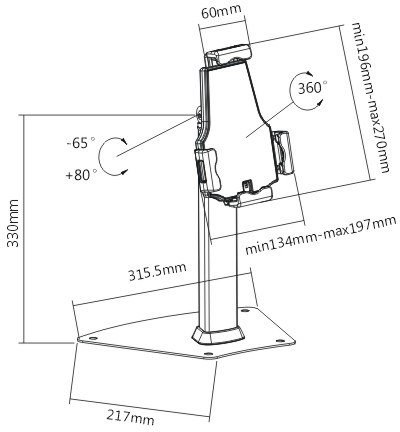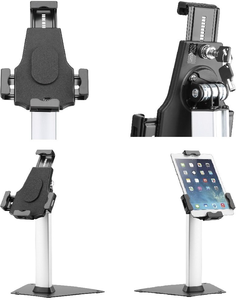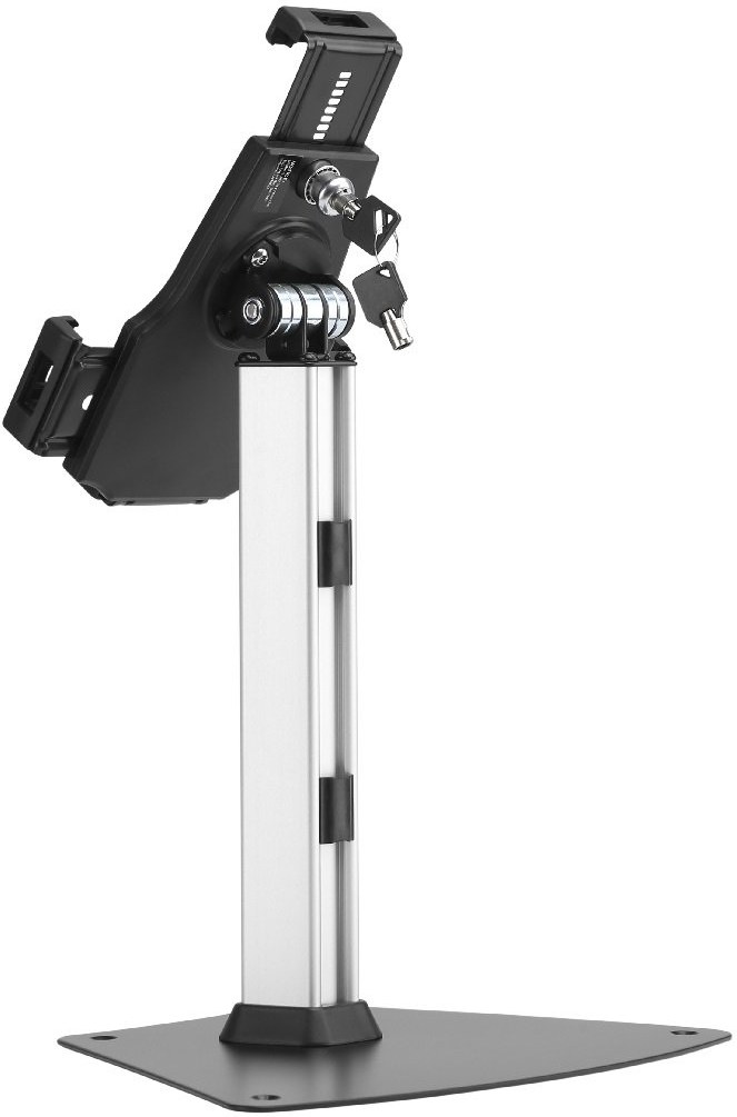 stolný držiak na tablety a iPady 7,9" až 10,5", výška 33cm, náklon tabletu +80°/-65°, uzamknutie tabletu v držiaku, podstava 316x217mm s otvormi na ukotvenie, pivot, úchytky na kabeláž, 3 kľúčeZobraziť viac