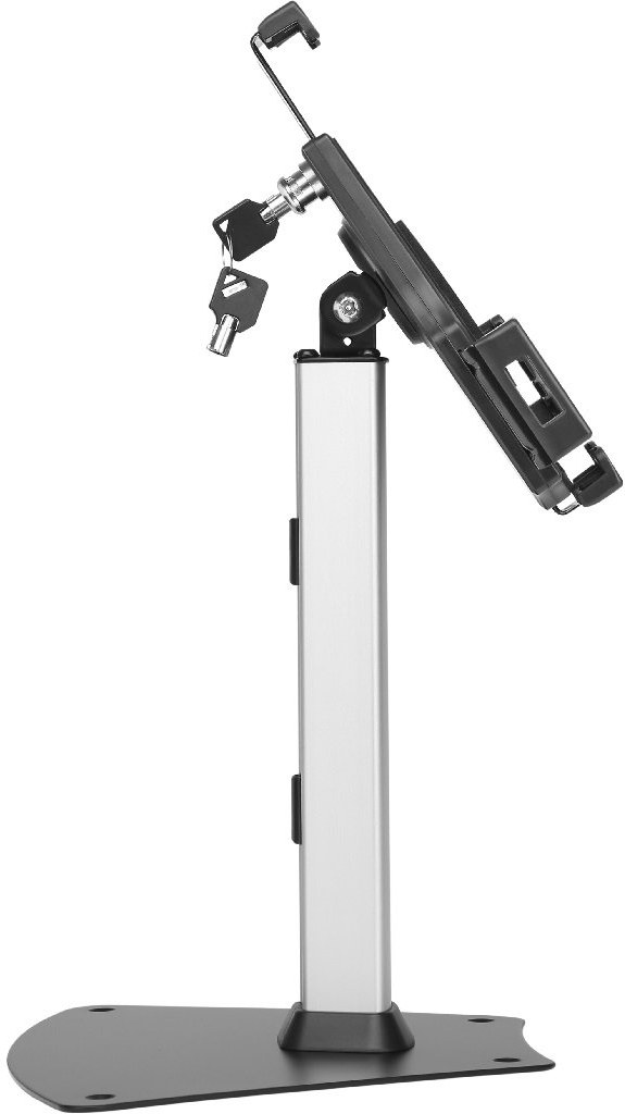Stolný držiak na tablety a iPady 7,9" až 10,5", výška 33cm, náklon tabletu +80°/-65°, uzamknutie tabletu v držiaku, podstava 316x217mm s otvormi na ukotvenie, pivot, úchytky na kabeláž, 3 kľúče.Profesionálny stolný držiak so systémom na uzamknutie tabletu alebo iPadu. Držiak je vhodný na tablety s uhlopriečkou 7,9 "až 10,5". Držiak má zámok s 3 kľúčmi, tablet alebo iPad v ňom bezpečne zaistíte proti odcudzeniu. Výška stojana 330mm, nastaviteľný náklon od +80 ° do -65 °, rotácia - pivot, podstava 316x217mm s otvormi na ukotvenie. Stojan vyniká nielen kvalitou ale aj svojim krásnym dizajnom a polohovateľnosťou.