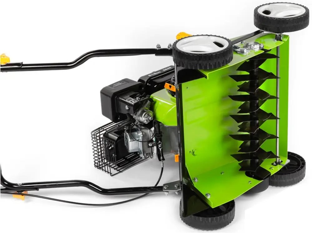 Kolesá namontované na guľôčkových ložiskách zaisťujú plynulý a stabilný pohyb stroja po trávniku. Ložiská znižujú trenie, čo uľahčuje manipuláciu aj na nerovnom teréne. Vďaka tomu je práca s vertikutátorom pohodlnejšia a menej namáhavá.