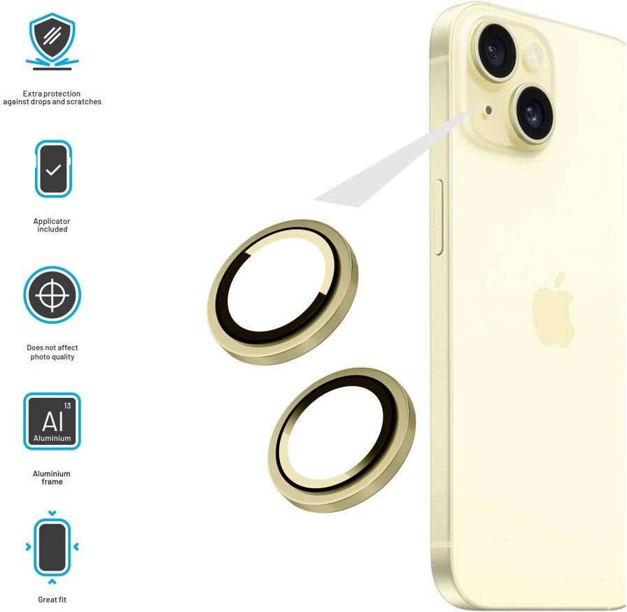 Fixed Camera Glass ochranné sklá šošoviek fotoaparátu pre Apple iPhone 15/15 Plus, žlté