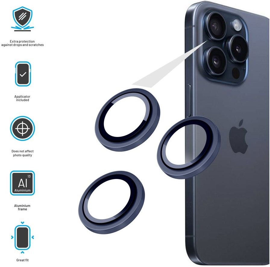 Fixed Camera Glass ochranné sklá šošoviek fotoaparátu pre Apple iPhone 15 Pro/15 Pro Max, modré