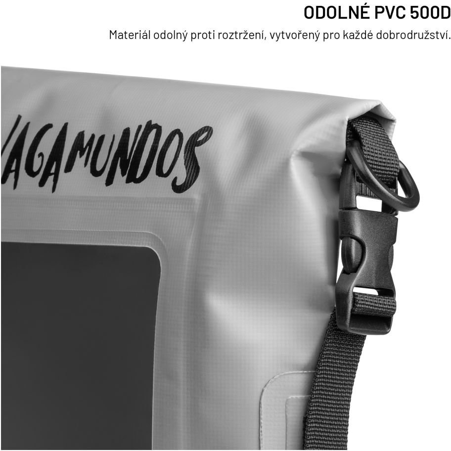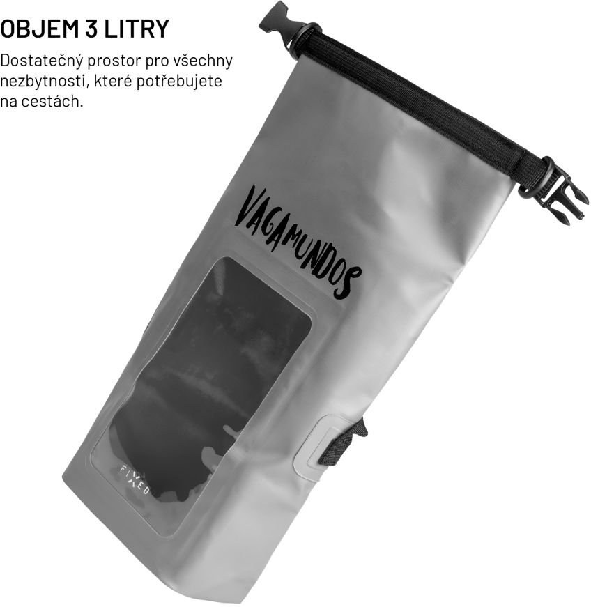 Vodeodolný vak FIXED Float Bag vznikol priamo do terénu a svoje schopnosti otestoval na výprave spoločne s cestovateľskou partiou Vandrákov – Pavlom Liškom, Honzom Révaiom a Hynkom Bernardom. Na ich dobrodružných cestách sa stal nenahraditeľným pomocníkom na ochranu všetkých nevyhnutností, a hlavne ich najcennejšieho člena – doktora Stingla. Práve tento pevný, vodeodolný vak bol jeho domovom, keď s nimi ako bábka putoval pralesom, hral domorodcom divadlo a prežíval tropické lejaky.Float Bag sa vďaka svojej 3-litrovej kapacite postará o to najdôležitejšie, čo chcete mať vždy pri sebe – mobil, peňaženku, doklady alebo pokojne aj bábku. Vnútorné uzatvárateľné vrecko pojme telefón až do veľkosti 7,5" a ochráni ho pred vodou aj poškriabaním od ostatných vložených vecí. Telefón v uzatvárateľnom vrecku však nestráca svoje funkcie a je možné ho cez transparentnú vrstvu stále ovládať. Samotný vak je vyrobený z pevného PVC 500D materiálu, ktorý vydrží aj odolný voči počasiu. zatváranie ponúka dve varianty zapnutia - zvrchu alebo z boku, pre bezpečne utesnenie Vak dopĺňa nastaviteľný popruh na nosenie cez rameno alebo crossbody, prípadne ho ľahko pripnete k batohu.