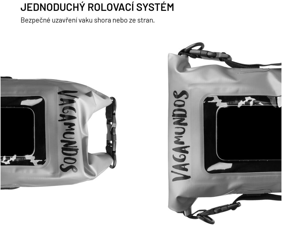 - vodeodolný vak pre telefón a ďalšie nevyhnutnosti- vnútorné uzatvárateľné vrecko pre telefóny s uhlopriečkou až 7,5" (19,5 x 11,5 cm)