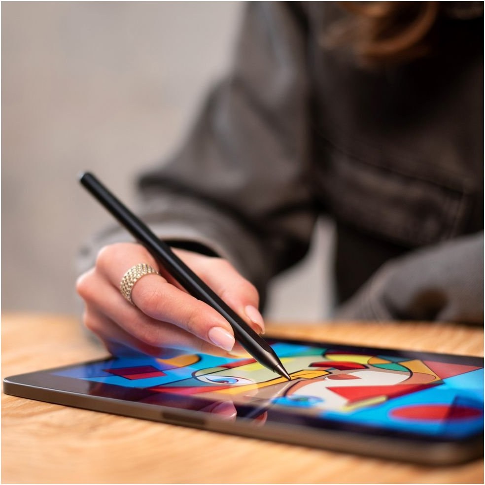 Aktívny stylus FIXED Graphite Pro s bezdrôtovým nabíjaním navrhnutý priamo pre Apple iPad je šikovný nástroj pre všetkých kreatívcov a tvorcov obsahu aj pre každodennú prácu s iPadom. Stylus je vyrobený v ergonomickom dizajne z luxusnej odolnej zliatiny a vo svojom tele ukrýva množstvo užitočných funkcií.Párovanie s iPadom pomocou Bluetooth je rýchle a intuitívne, po prvom nastavení sa štýlu pripojí vždy automaticky. Používanie štýlu Graphite Pro je úplne intuitívne, dokonale simuluje písanie aj kreslenie na klasickom papieri, dotyk s displejom je presný na pixel a má nulovú odozvu oneskorenia. Prácu vám uľahčí múdra technológia Palm rejection, ktorá ignoruje dotyk ruky opreté o displej a Home screen tlačidlo priamo na styluse, ktoré vracia na domovskú stránku v iOS.
