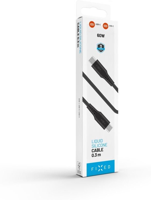 Fixed Liquid silicone krátký nabíjací a dátový kábel s konektormi USB-C/USB-C a podporou PD, 0.3m, USB 2.0, 60W, čierny