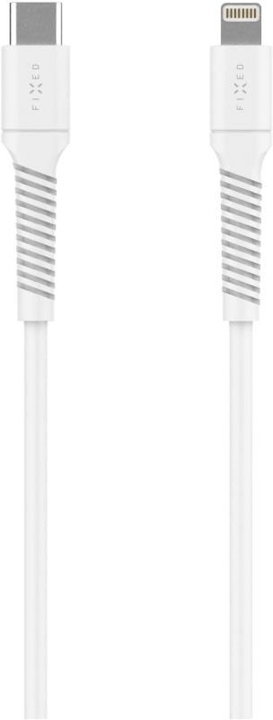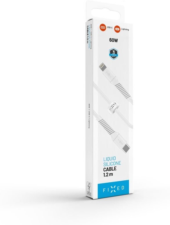 Fixed Liquid silicone nabíjací a dátový kábel s konektormi USB-C/Lightning a podporou PD, 1.2m, USB 2.0, 60W, biely
