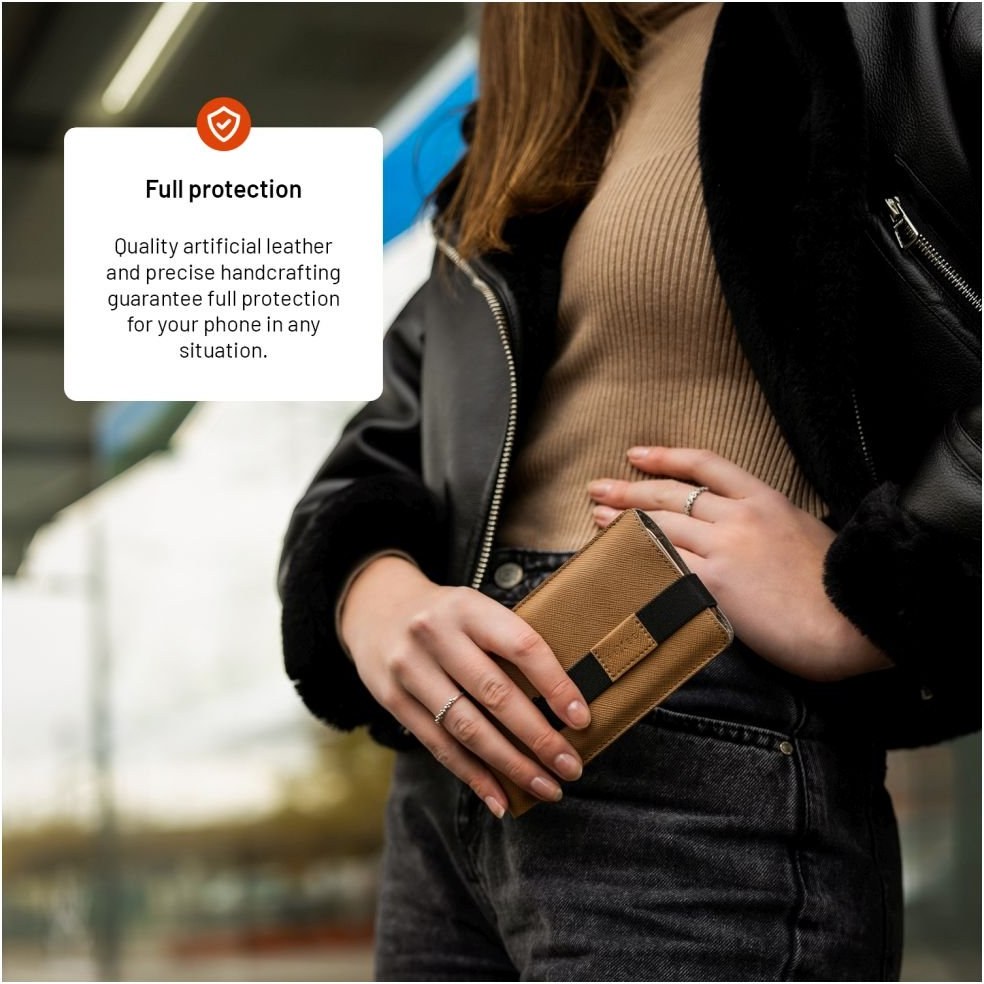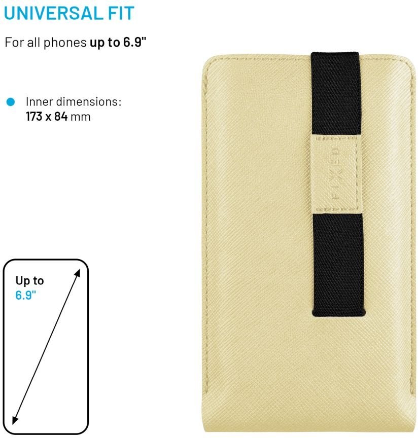 Univerzálne puzdro FIXED Lucca poskytne vášmu telefónu bezpečie v štýlovom prevedení. Puzdro je ručne vyrábané v dielni z kvalitnej umelej kože, ktorá chráni telefón s uhlopriečkou až 6,9“. Pre zaistenie telefónu je puzdro doplnené o praktický popruh, ktorý bráni nechcenému vypadnutiu, a to aj pri nosení v kabelke alebo batohu. Zároveň umožňuje jeho ľahké vysunutie, stačí za popruh zatiahnuť a telefón vyjde z puzdra. Po opätovnom vložení telefónu sa pásik stiahne. Elegantný vzhľad a odolnosť puzdru dodáva kvalitná umelá koža so vzorom Saffiano, pre ktorý je typické diagonálne šrafovanie. Materiál sa tak stáva odolným proti škrabancom či bežnému opotrebovaniu, a pritom je príjemný na dotyk. Puzdro s elegantným dizajnom v modernej farbe povyšuje ochranu telefónu na štýlový doplnok.Vlastnosti