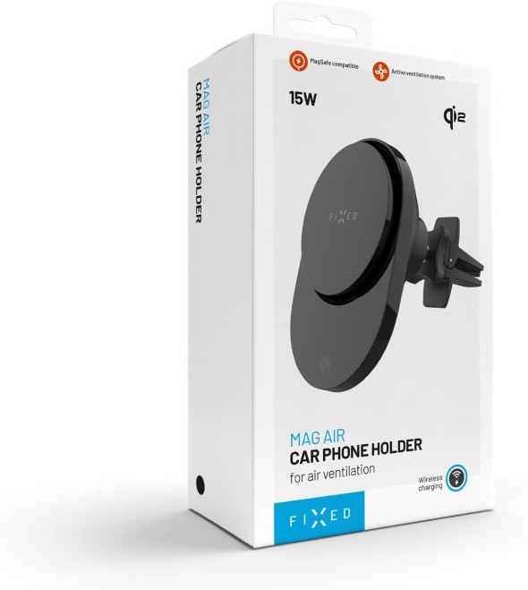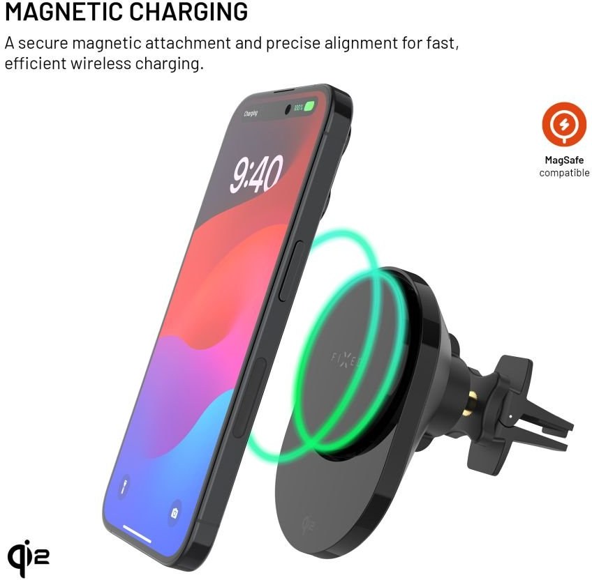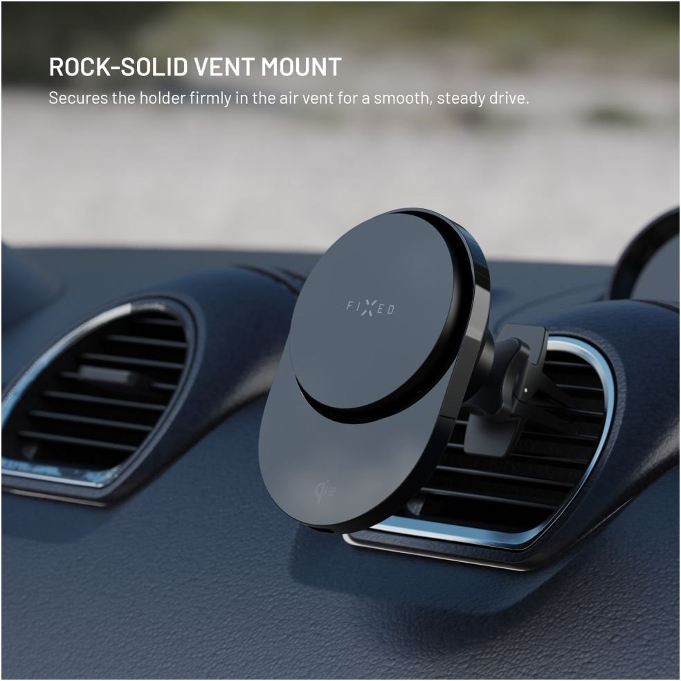 Fixed MagAir držiak do auta s bezdrôtovým nabíjaním s podporou uchytenia MagSafe a štandardom Qi2, 15W, čierny