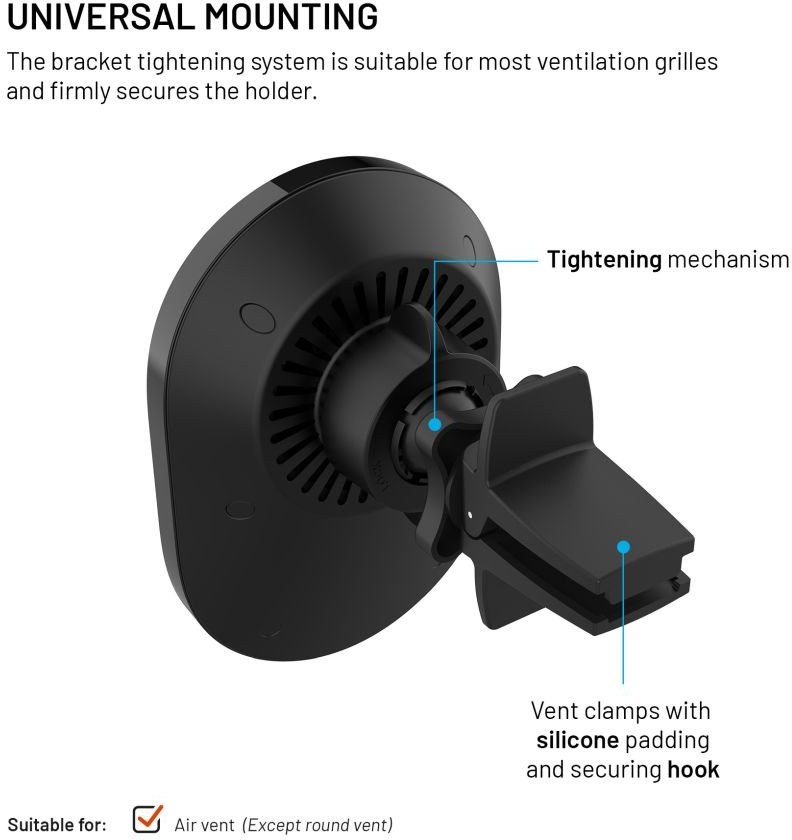 bezdrôtové nabíjanie, držiak pre telefón do ventilácie, maximálny výkon 15 W, podpora MagSafeZobraziť viac