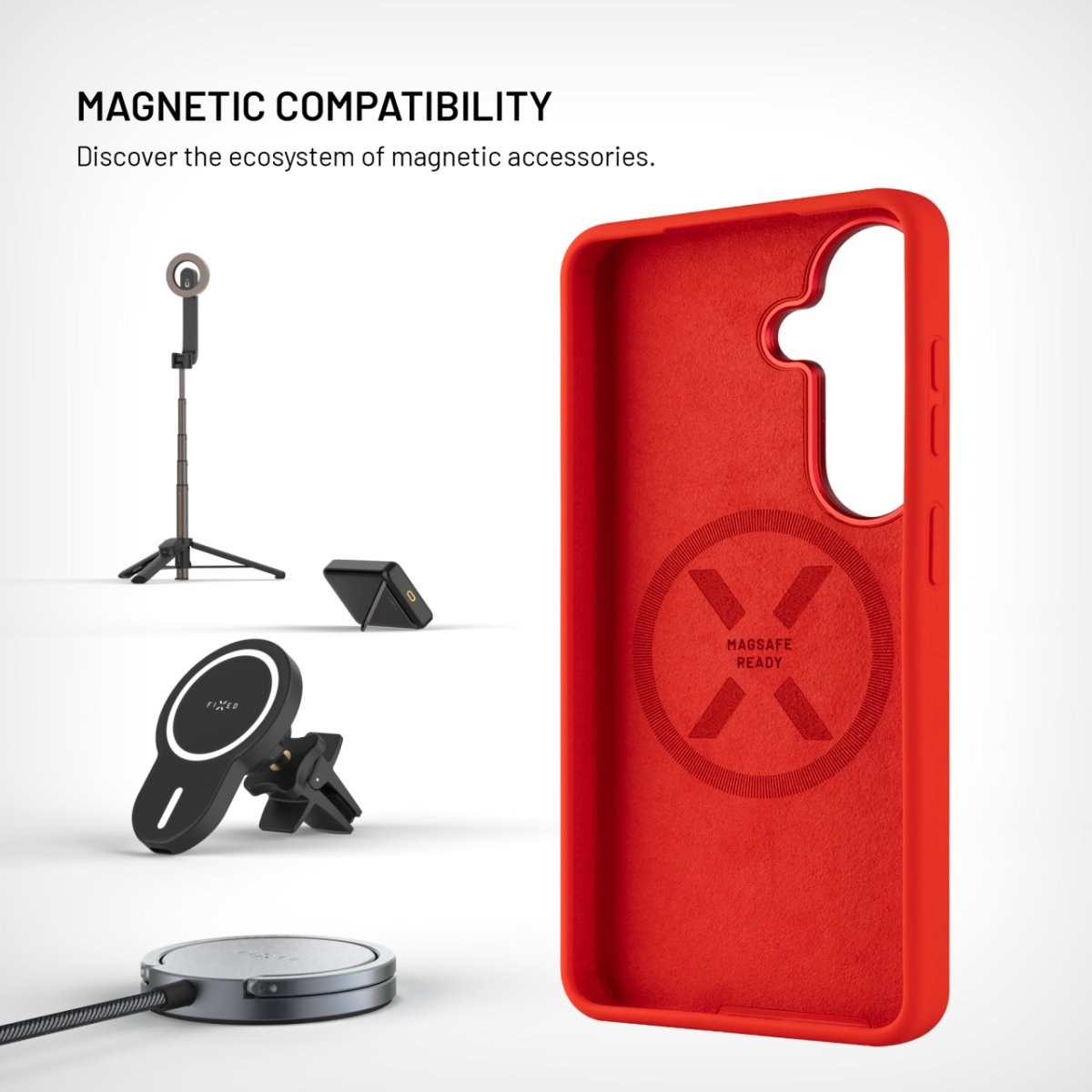 Fixed MagFlow kryt s podporou MagSafe pre Samsung Galaxy S26, červený