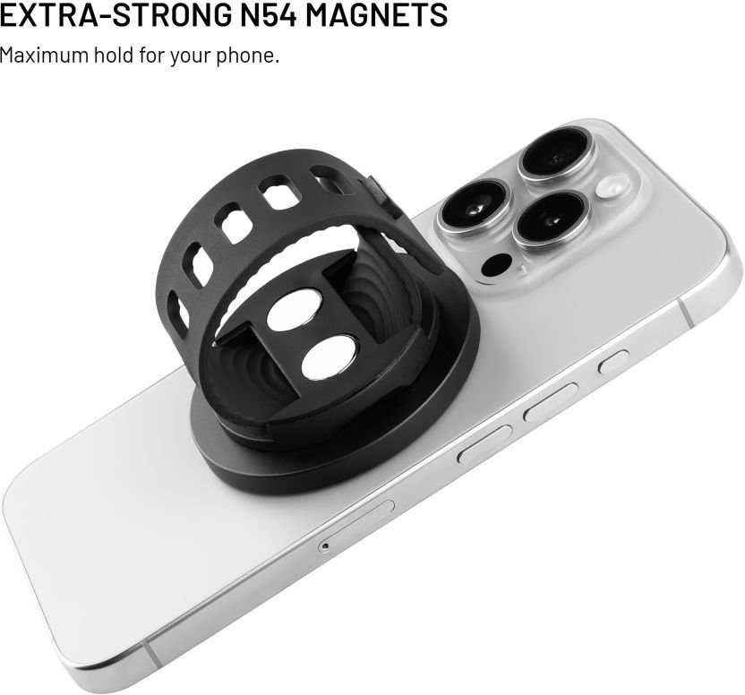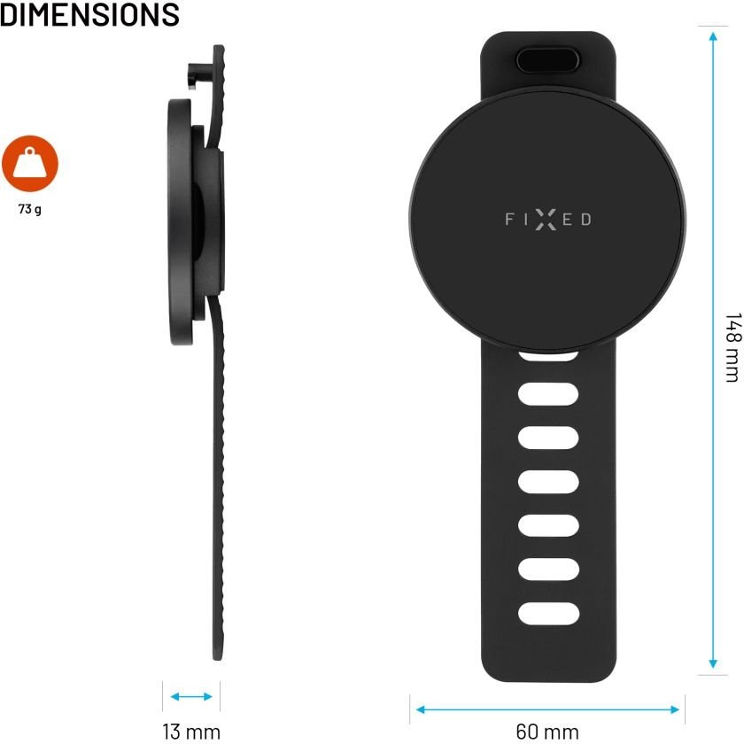 Ďalšia možnosť uchytenia držiaka poskytujú silné magnety na zadnej strane, ktoré je možné pripevniť na akýkoľvek rovný kovový povrch. Okrem športu nájde držiak využitia napríklad aj v dielni, kuchyni či na madle kočíka. Vďaka otočnej hlave je možné pohodlne nastaviť telefón do zvislej či vodorovnej pozície a jemný povrch držiaka chráni jeho zadnú stranu pred poškriabaním. Je kompatibilný s iPhonmi radu 12 a vyššie, ale aj s ďalšími telefónmi opatrenými MagSafe krytom alebo lepiacim magnetickým kolieskom, ktoré je súčasťou balenia. FIXED MagGrip Active je praktický doplnok pre všetkých, ktorí chcú mať telefón na očiach a voľné ruky doma, vonku aj pri športe.Vlastnosti