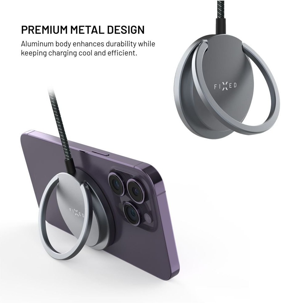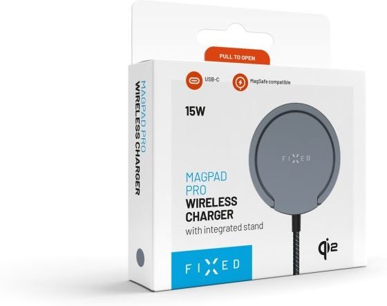 Fixed MagPad Pro, bezdrôtová nabíjačka s Qi2 podporou MagSafe a stojanom, 15W, sivá, (rozbalené)