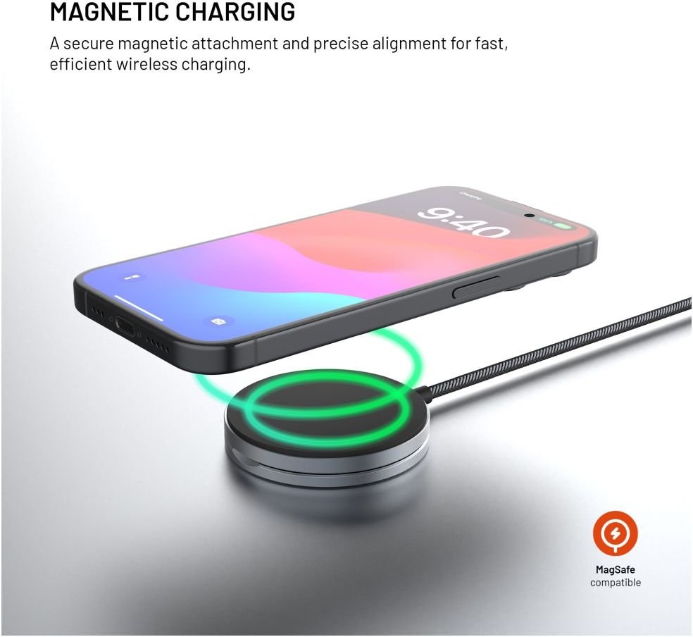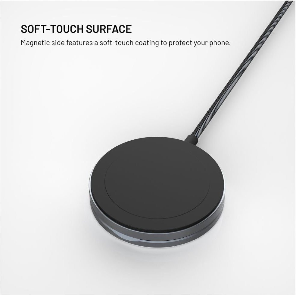 Telo nabíjačky z odolného hliníka vo farbe Space Gray ladí s ostatnými Apple produktmi, zatiaľ čo nabíjacia plocha s jemným soft-touch povrchom chráni telefón pred poškriabaním. Nabíjačka je doplnená o 1,2 m dlhý kábel s odolným nylonovým opletom a USB-C konektorom s hliníkovou koncovkou pre zvýšenú životnosť kábla.Vlastnosti