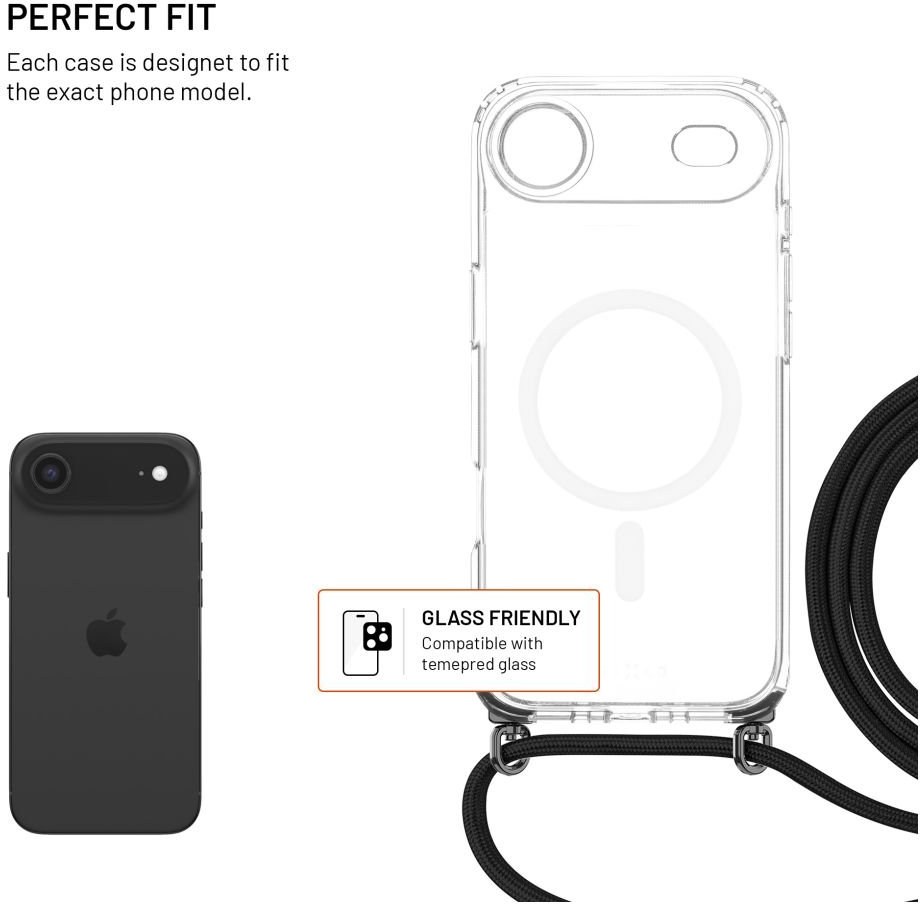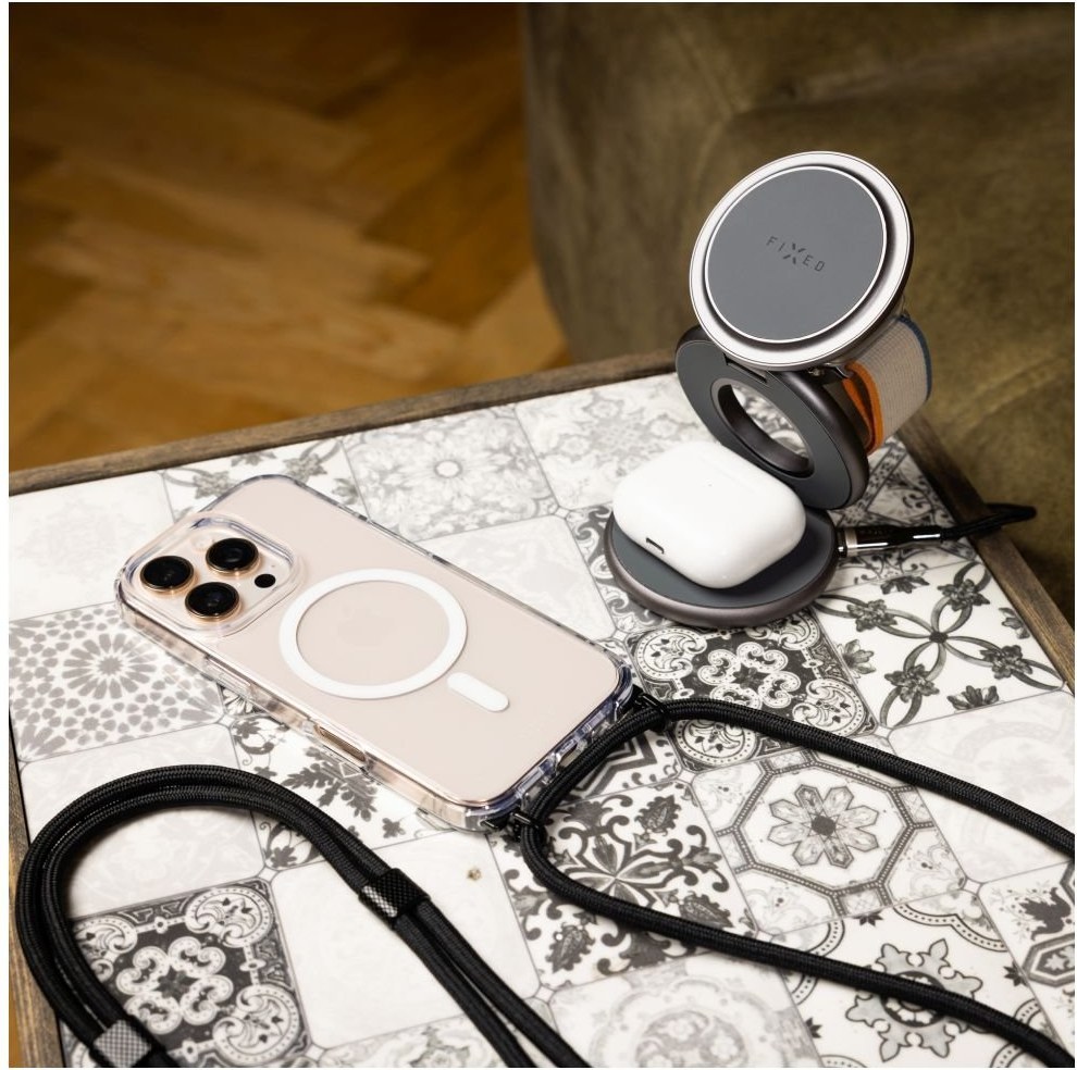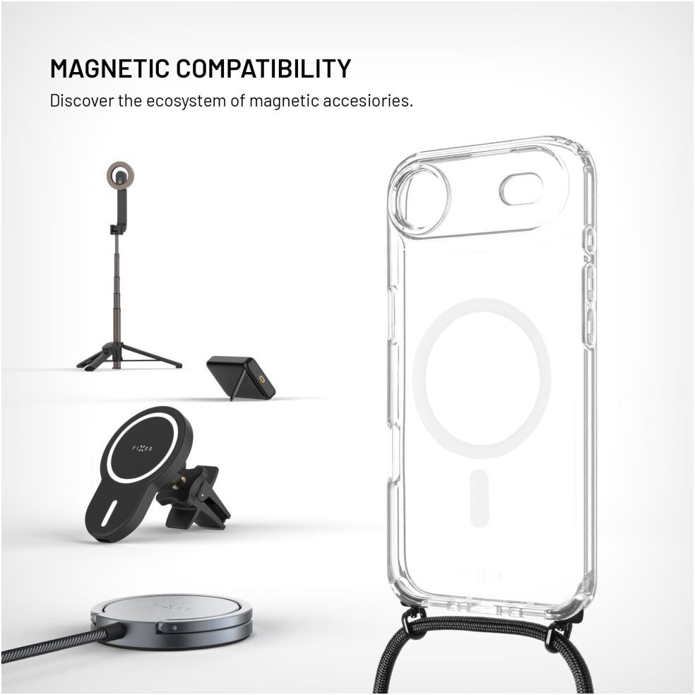 Fixed MagPure Neck puzdro s čiernou šnúrkou na krk pre Apple iPhone Air
