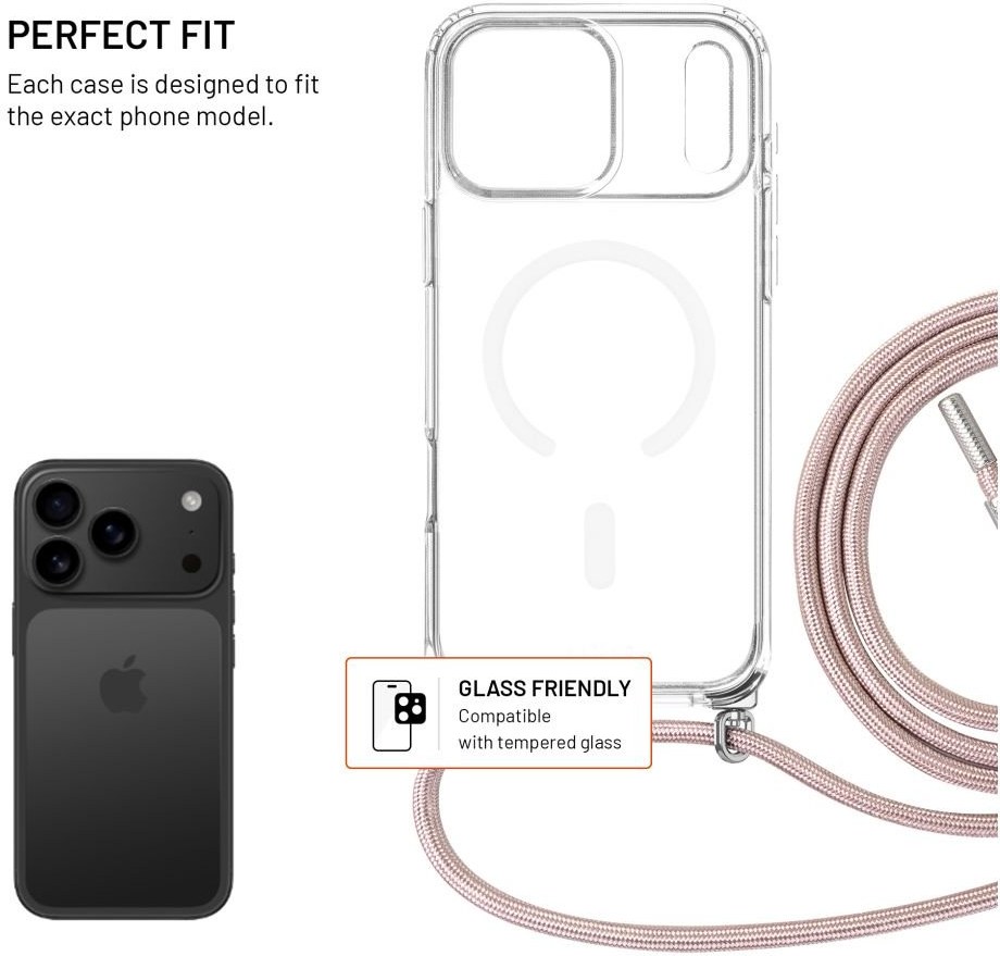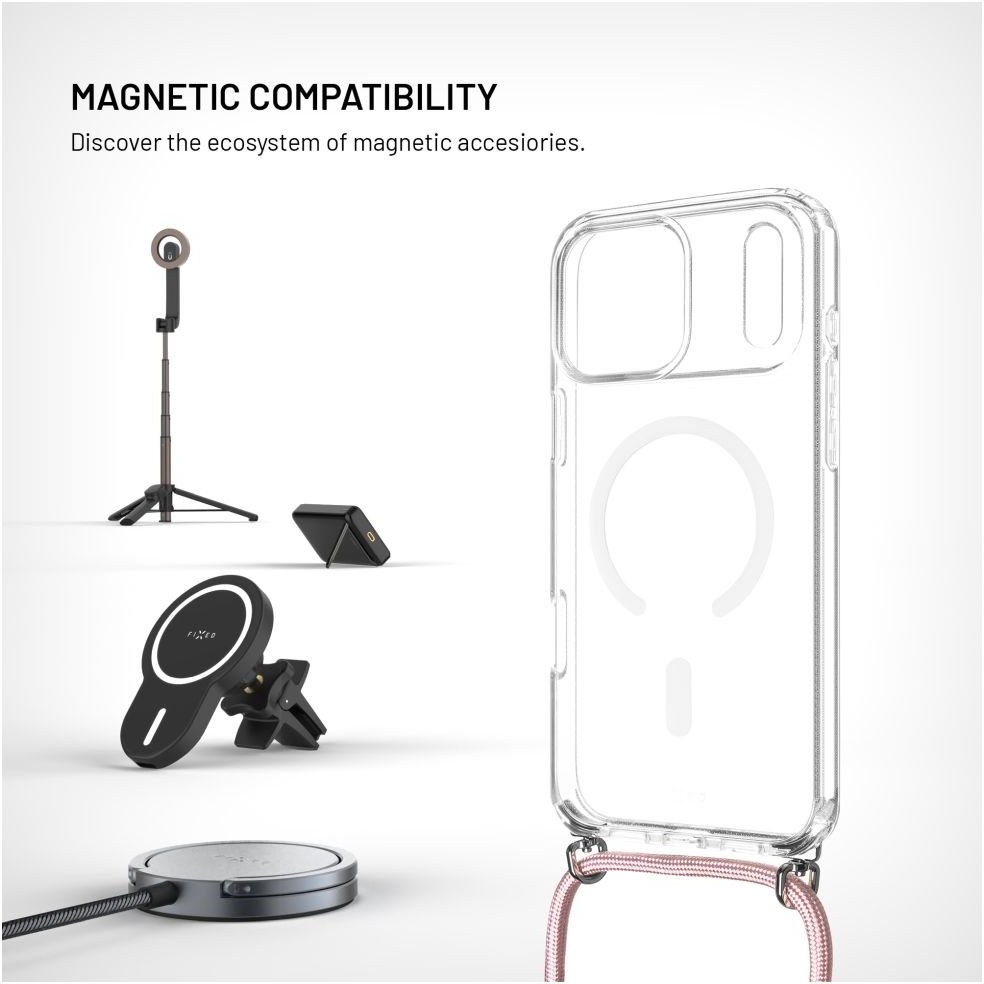 Fixed MagPure Neck puzdro s ružovou šnúrkou na krk pre Apple iPhone 17 Pro Max